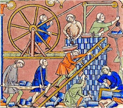 ✎ Un chantier de construction au Moyen-Âge (référence inconnue)